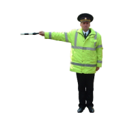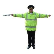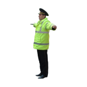 b) pentru participanţii la trafic la care agentul de circulaţie este adresat cu faţa (figura 14), acest semnal înseamnă: