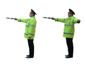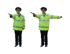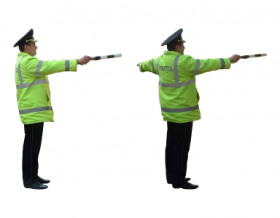 a) pentru participanţii la trafic la care agentul de circulaţie este adresat cu partea stîngă laterală a corpului (figura 13), acest semnal înseamnă: