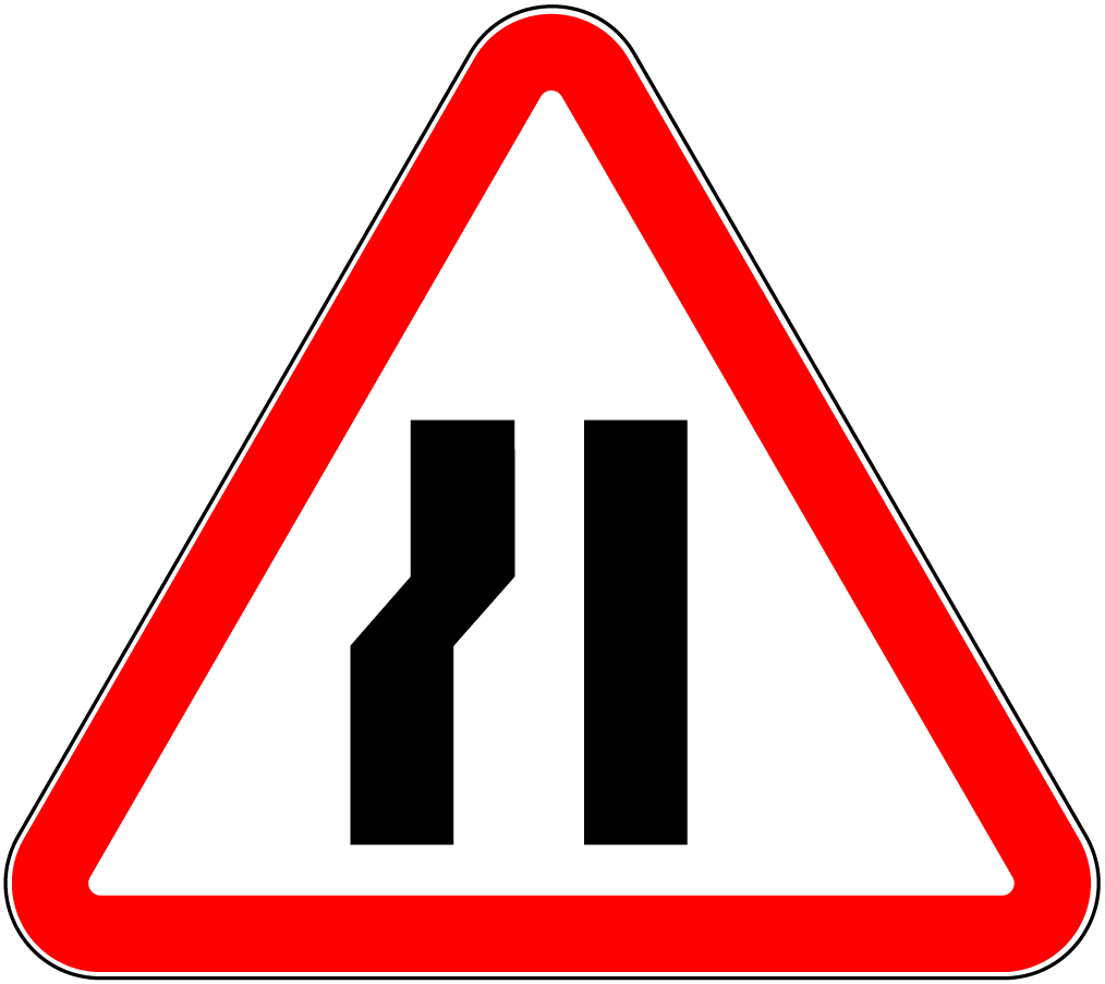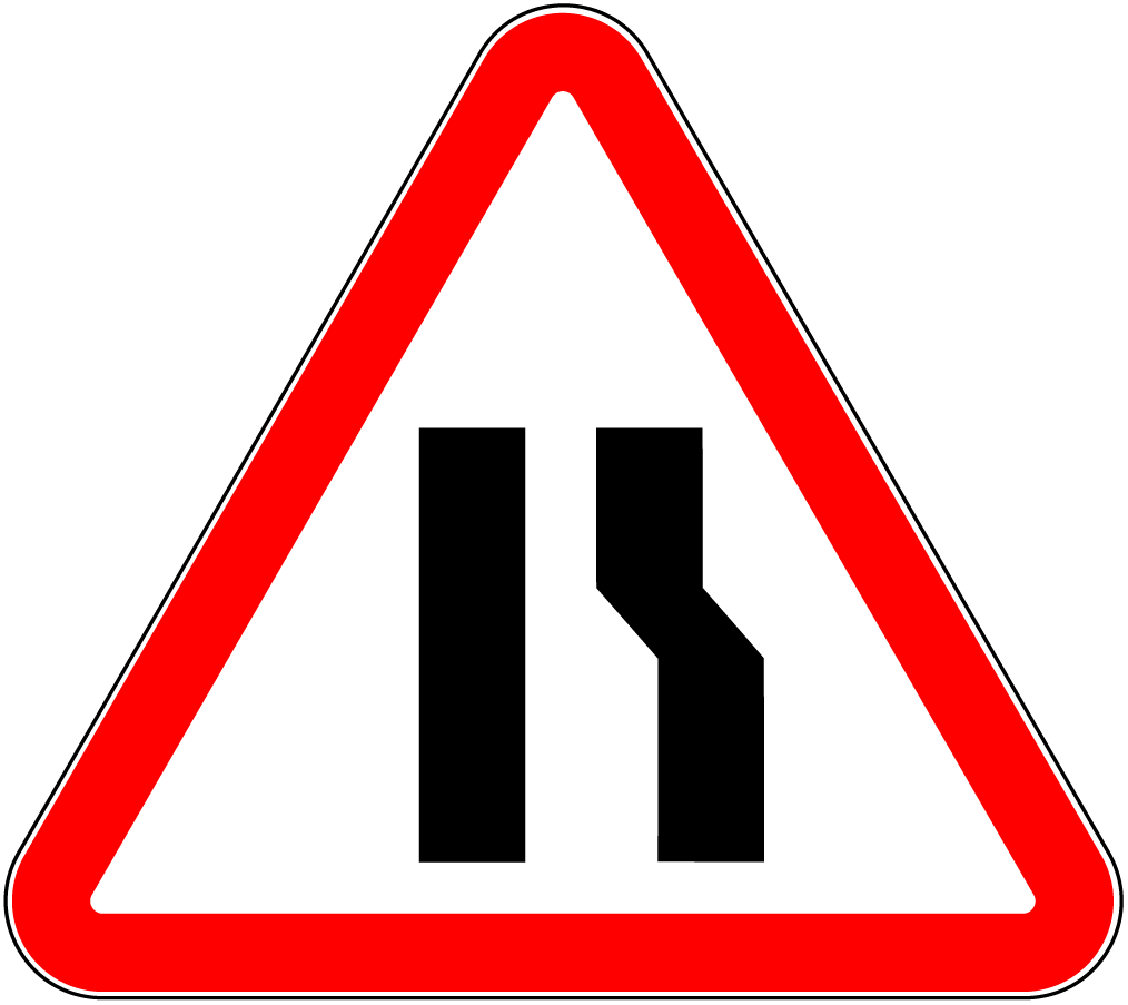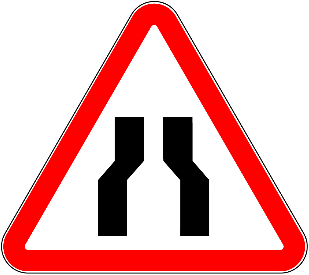 **   În afara localităţilor indicatorul 2.5  se repetă. Primul se instalează înaintea sectorului de drum îngustat, în asociere cu panoul adiţional 6.1.1 , pe acelaşi suport cu unul dintre indicatoarele 1.18 (1.18.1 , 1.18.2 , 1.18.3 ).