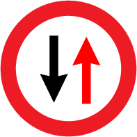 **      2.5 "Prioritate pentru circulaţia din sens opus" – este interzis accesul pe sectorul de drum îngustat, unde trecerea concomitentă în sensuri opuse a două vehicule este dificilă sau chiar imposibilă. Conducătorul trebuie să cedeze trecerea vehiculelor care vin din sens opus şi se află pe acest sector sau sunt în apropierea lui.